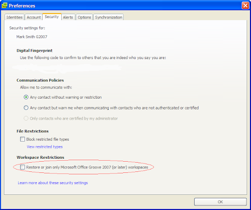 The Problem: You are running Groove 2007 and you cannot accept invitations to workspaces created using Groove 3.1 or earlier.